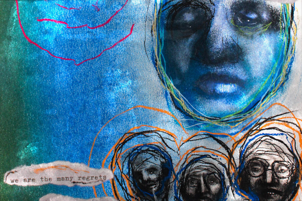 The Faces of My Conscience Meeting Judgment Charcoal, pastel & original writing on 12 x 18β³ 140lb watercolor paper β Available at my upcoming tour dates (Debuts in Pittsburgh, Pennsylvania August 23rd and 24th with the Oddities & Curiosities Expo) Art Print β Coming Soon Your worst moments will pay you a visit and echo until you lift off into oblivion. God is not pleased and you have failed. Isn't being human who believes in the unbelievable fun? βΎβΎβΎ...