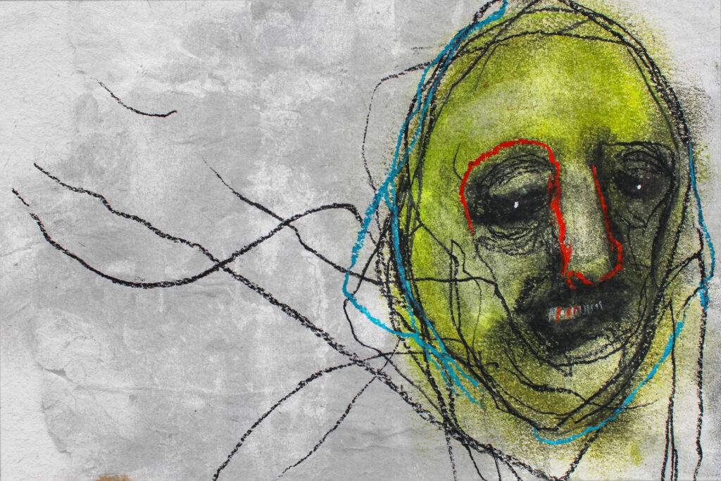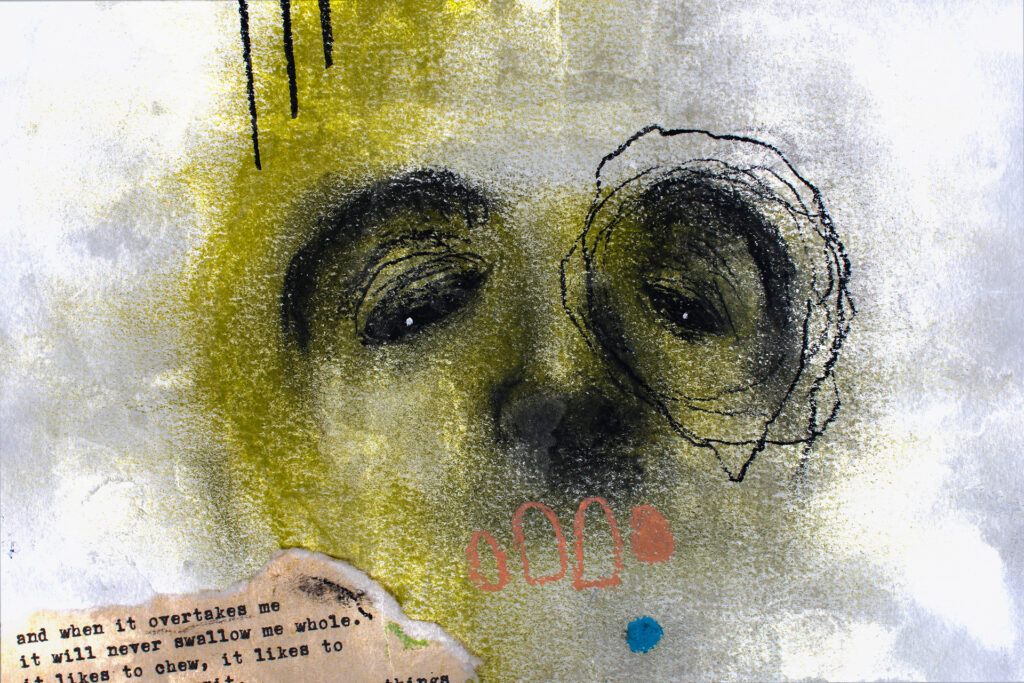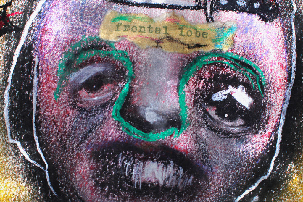 My Frontal Lobe Harmonizes with a Murder Plot โพ Charcoal, pastel & original poetry on 9 x 12โณ 140lb watercolor paper โ Available starting in Milwaukee, WI with the Oddities and Curiosities Expo April 4th/5th Art Print - Available here โพ The murky thoughts and reaction to this life begins to pull your inner trigger. You will always find out what you're capable of. โพโพโพ...