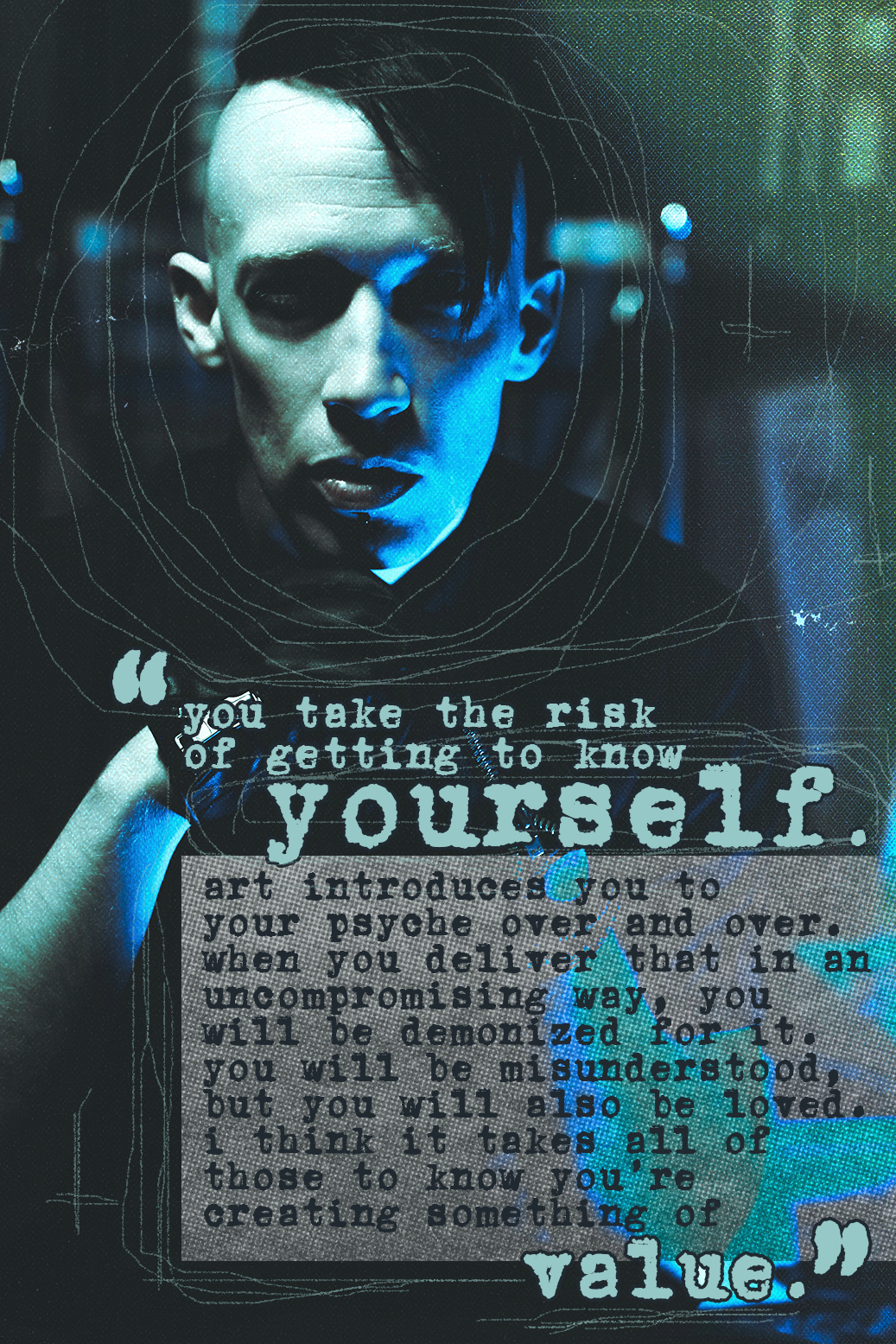 “You take the risk of getting to know yourself. Art introduces to your psyche over and over. When you deliver that in an uncompromising way, you will be demonized for it. You will be misunderstood, but you will also be loved. I think it takes all of those to know you’re creating something of value.” – Travis Trium Perfectum
