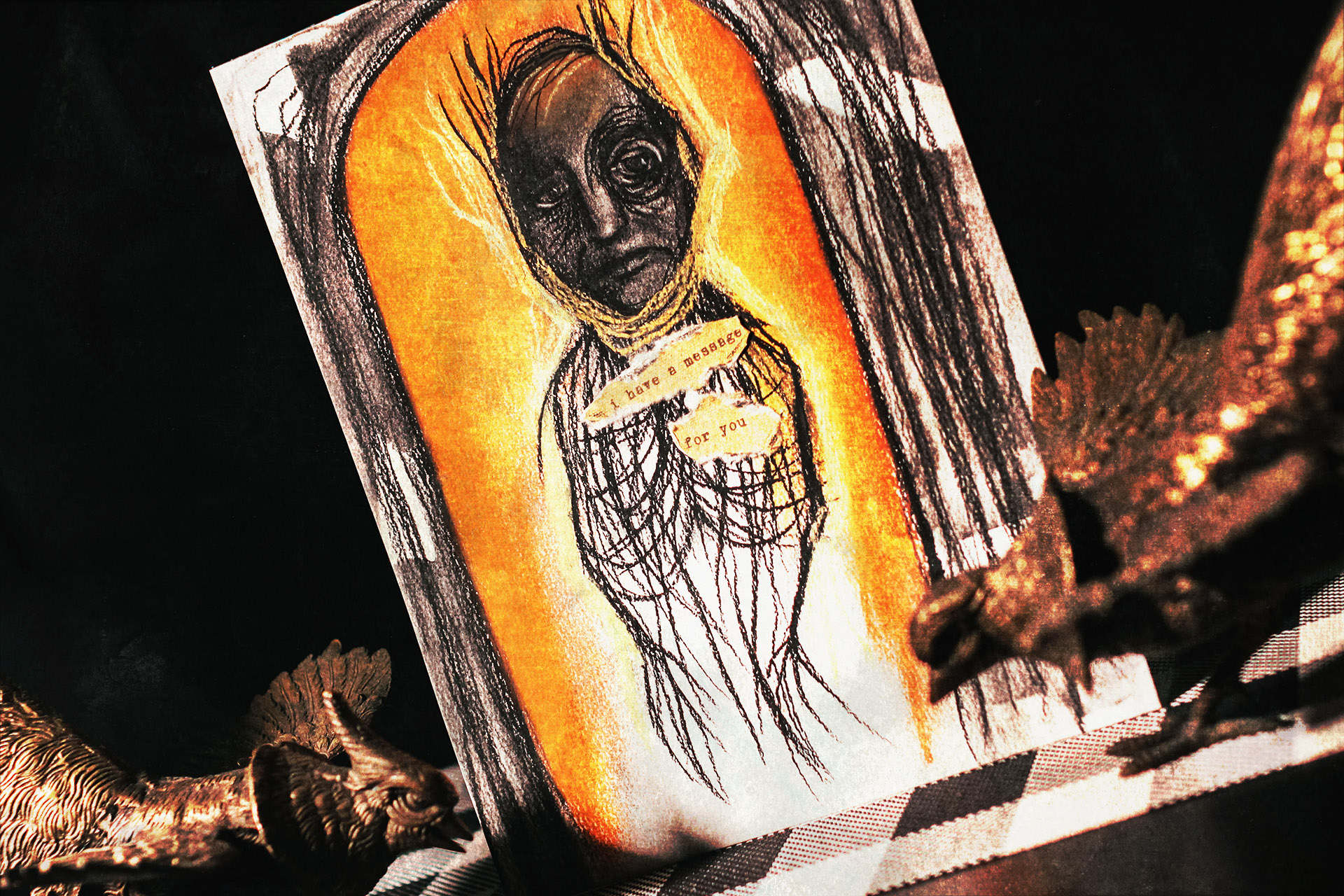 A joyful skeleton’s time to celebrate has come as the church burns into dust.