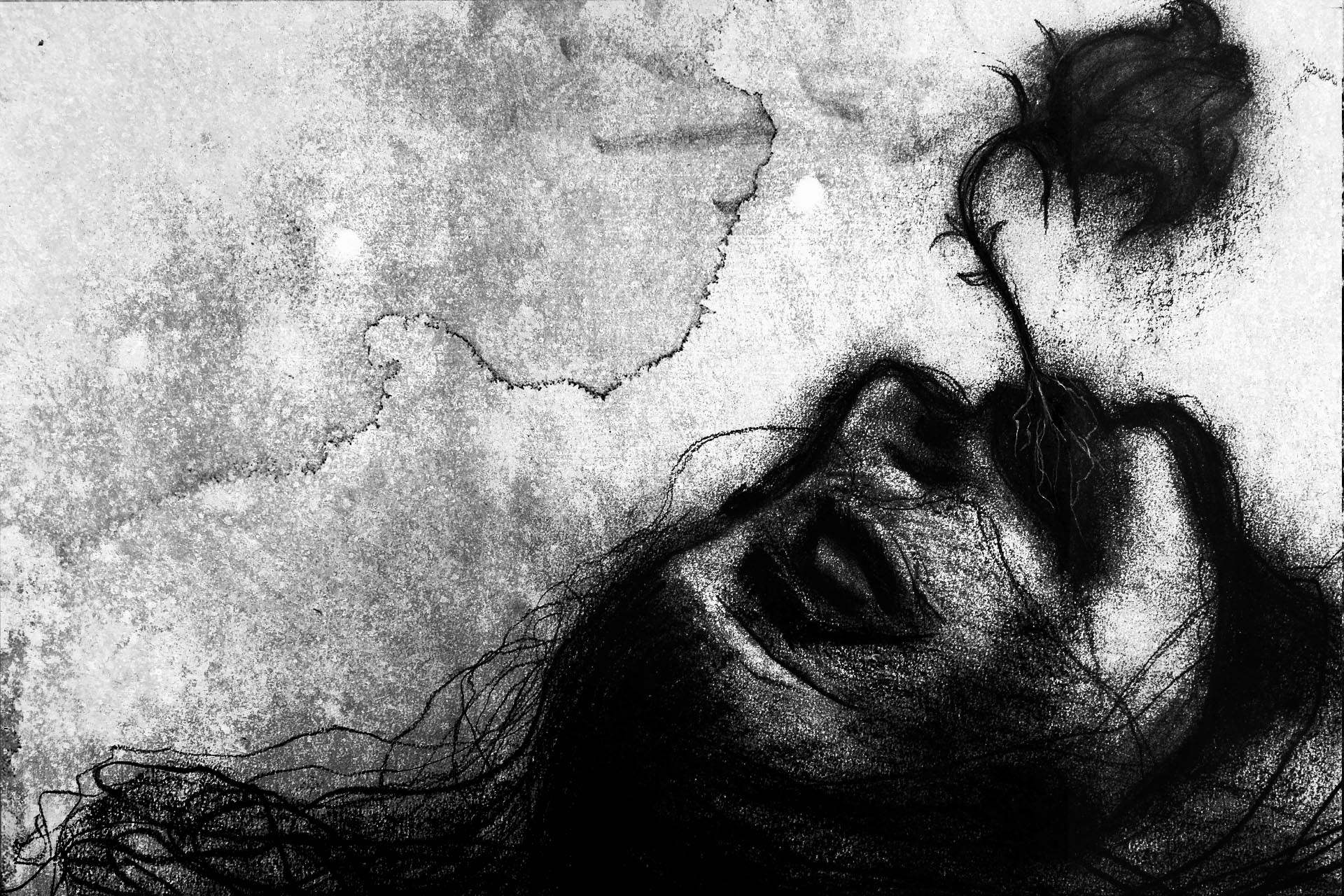 A fragile and vulnerable entity is commanded to spit into the right hand of an unseen being in this chaotic, surreal scene. Handwriting scatters around the emission reading, “You had such promise. Make me into something worth destroying. Fill me up with your emptiness that I created. I like watching you dry slowly. The light in your eyes dims, spit by spit.”