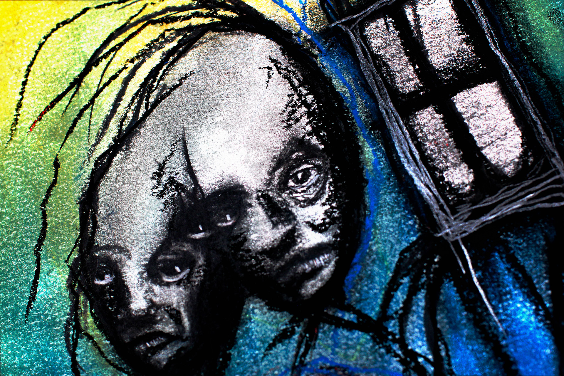 “There’s something infinite about this, something beautifully detached from time.” Outside of a decaying window, an ethereal apparition in the color of static appears. Only their eyes and lips visible with twisting white noise holding their features. Time isn’t related to this moment and it feels violently seized as the static man glares on.
